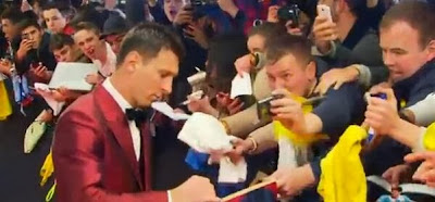 | Four time ballon d’or winner, Lionel Messi signing autographs |