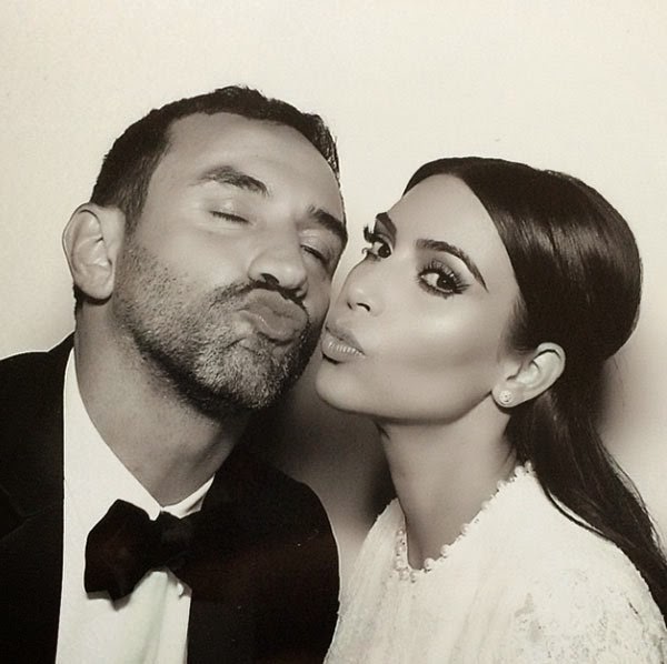 | You design a perfect wedding dress, you get a kiss: Kim and Givenchy head honcho Ricardo Tisci at the wedding |
