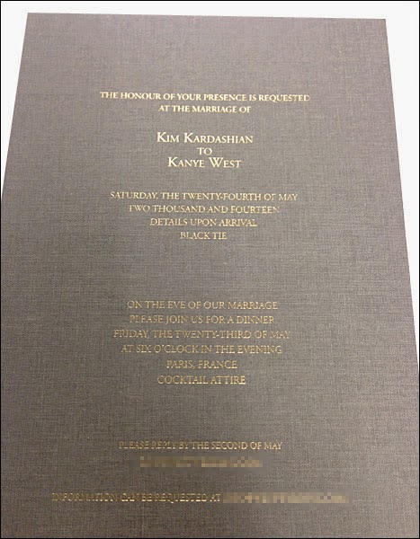 Check out their simple invitation card revealed by US Weekly (below) with barely any information but the date and time and the notation: “details upon arrival.”