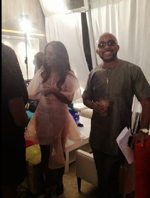 | With Toke Makinwa. Dear Banky, you are cute and we love you but if you want to wear sunglasses at such events, please make sure they are not so dark. |