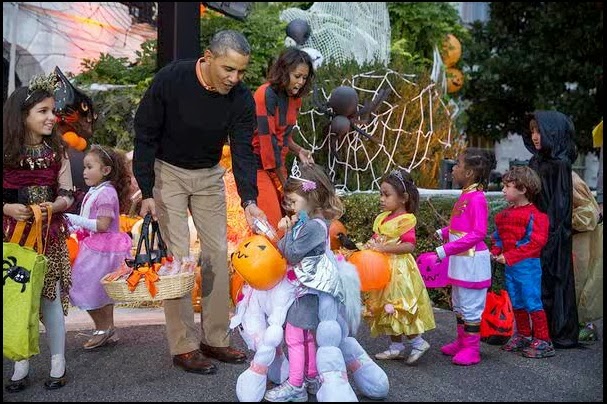 | This fun photo of the POTUS & FLOTUS with kids on Halloween at the white house can’t get any “funner” |