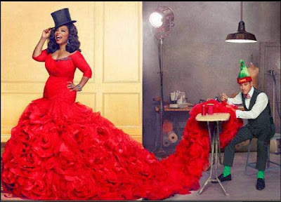 | Oprah Winfrey with her special elf (Jimmy Kimmel) on the O magazine cover |